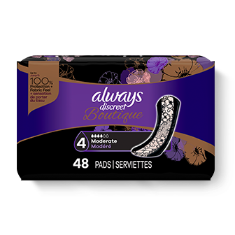 Looking for disposable women's incontinence underwear that gives you maximum protection and maximum comfort? Tired of bulky adult diapers that don't look and feel like "real" panties? Try Always Discreet Boutique Incontinence Underwear, which gives our most sophisticated fit along with a soft feel you'll love. The form-fitting design hugs a woman's curves with a soft, silk-like fabric so you can walk with poise and confidence. The ultra-thin core turns liquid to gel and locks away wetness in seconds for maximum protection that leaves you feeling secure for hours. Plus, these panties feature a special side LeakGuard to help stop leaks where they happen most: at the leg. Whether you have an overactive bladder or you're experiencing postpartum urine leaks, this disposable underwear can lock leaks and odor all day long. Get incredible and reliable protection with ladies' disposable Always Discreet incontinence underwear, available in sizes S/M – XL to fit all kinds of curves. Don't let leaks get in the way of your day, simply find your right size with the Always Discreet My Fit chart and get the protection you can depend on. Then, choose between two different yet equally stylish options - Black or Rosy - to better personalize your look.